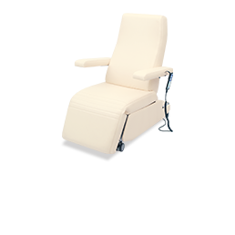 手元のスイッチで背もたれとフットレストの角度を個別に調整できるリクライニングチェア。
