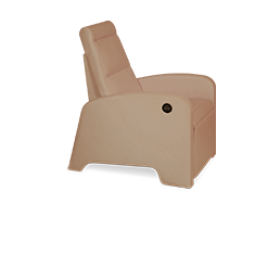フットレストが先に上がり、その後に背もたれが倒れるワンモーター式リクライニングチェア。