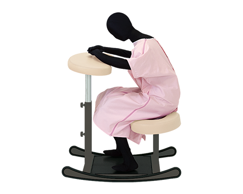 座位による前傾姿勢で、陣痛時の痛みを緩和する妊婦用チェア。