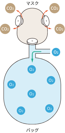 - リザーバマスクは、呼気時にリザーバに酸素を溜め、次の吸気時に溜まった酸素を吸い込むため、高濃度の酸素吸入ができる。