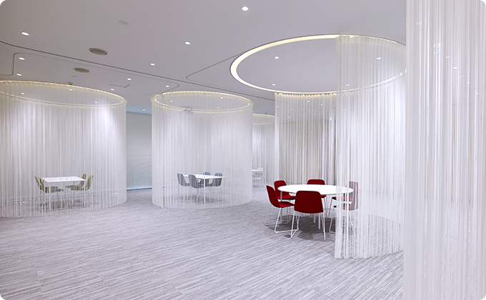 カーテンで区切られた落ち着いた空間で、図面などを広げてゆっくりとスタッフにご相談いただけます。また、現場の手技をリアルタイムでスクリーンに映すことができるため、ディスカッションを通じて理解が深まります。